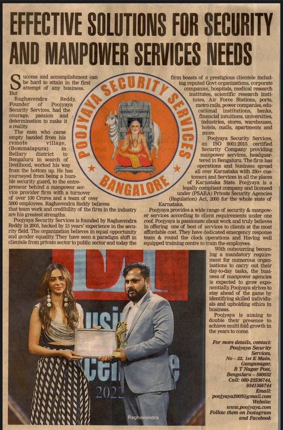 With 7000+ trained professionals, Poojyaya Group delivers reliable security, manpower solutions, film support, and charitable initiatives across Karnataka.